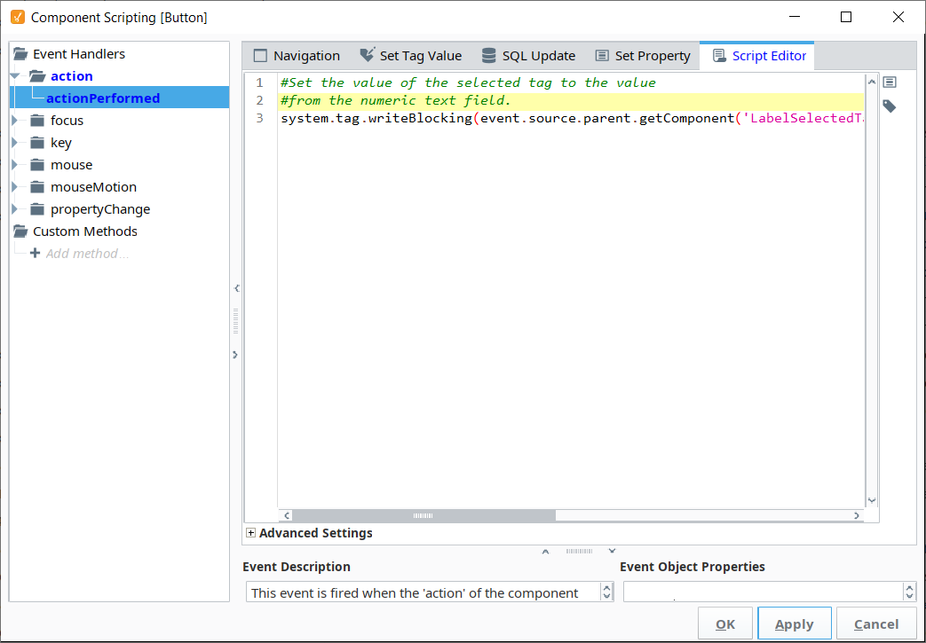 Right click the Power Table object and choose the 'Scripting' option. Enter the script below on the 'onPopupTrigger' event. This script populates the selected tag object and enables the button if the underlying tag is writeable.Put the system into run mode and test it out. The Power Table will show all tag values for the app. Right click on the Tag Name column in the table, enter a new value, and then click the 'Update' button to write a new value to the RTU over Modbus. The Automated export from PLC Shift Manger into Ignition allows you to create hundreds of correctly configured tags in seconds.