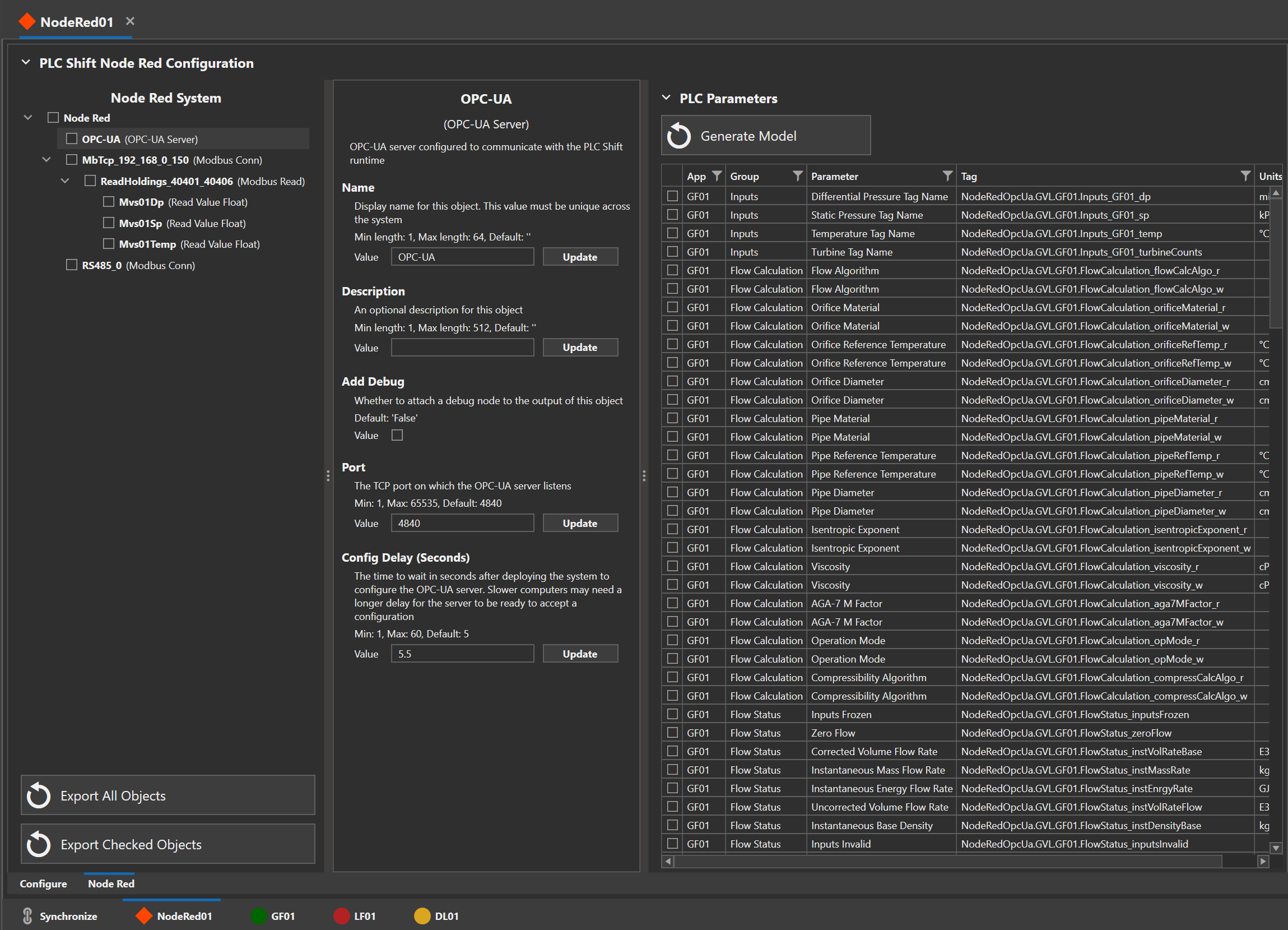 Staring in PLC Shift Manager version 2.28 (January 2026), it is possible to create configuration objects for Node Red. Node Red is a graphical, event-driven, IoT-centric system that allows users to easily work with industrial IO, sensors and protocols. The PLC Shift implementation of Node Red objects is specific to the requirements of the PLC Shift runtime and allows for rapid and simple configuration of the following features: