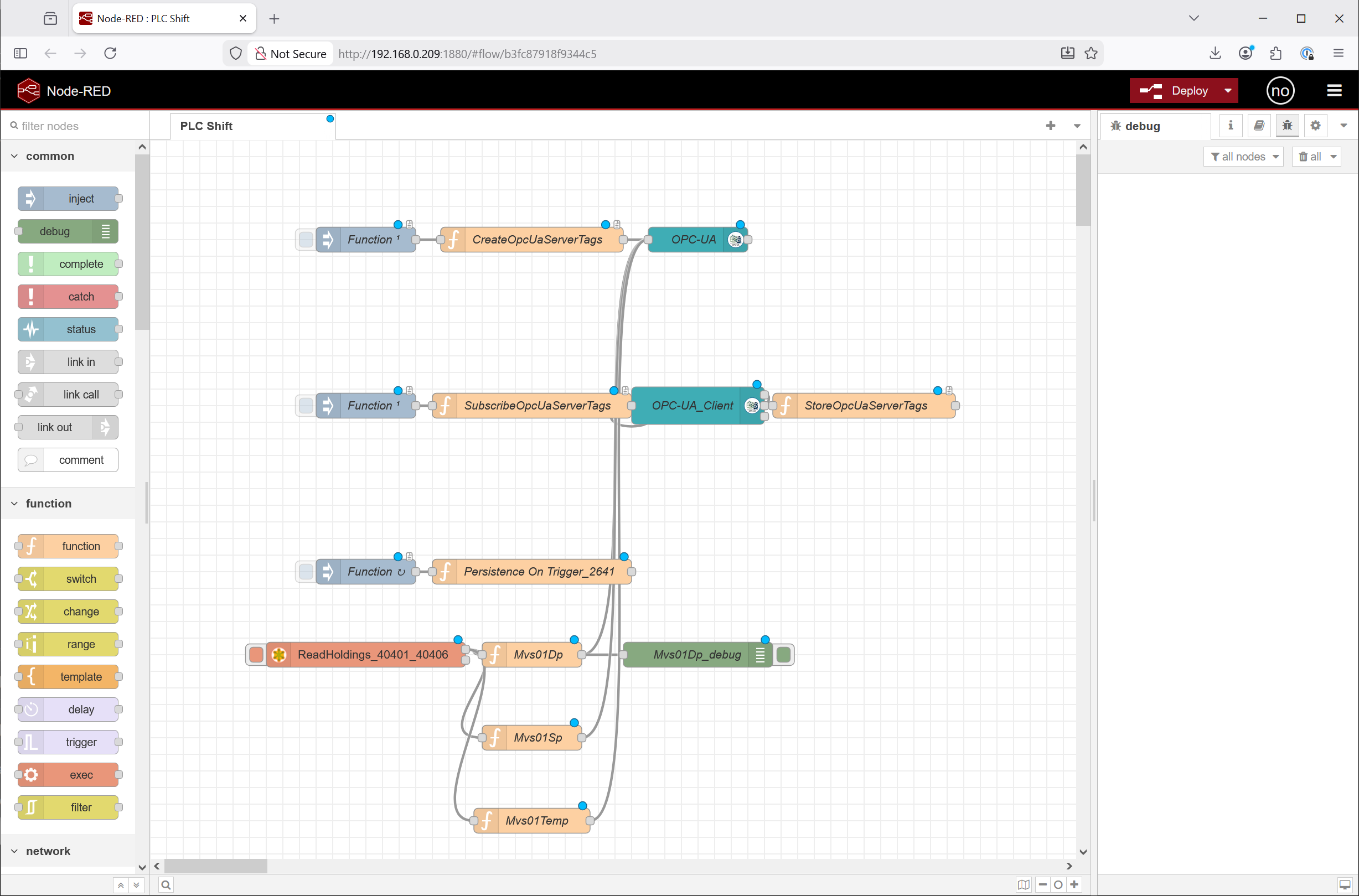 node-red-contrib-opcua. This library is used for the OPC UA server that the PLC shift runtime communicates with and the OPC UA client that is used to read tags from the server and make them available to Node Red objects.