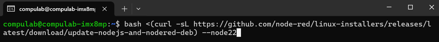 Before Node Red can be installed, the node.js runtime must be installed. As of January 2026, node.js version 22.x LTS is recommended. Instructions to install this version of node.js on Debian based systems can be found here.