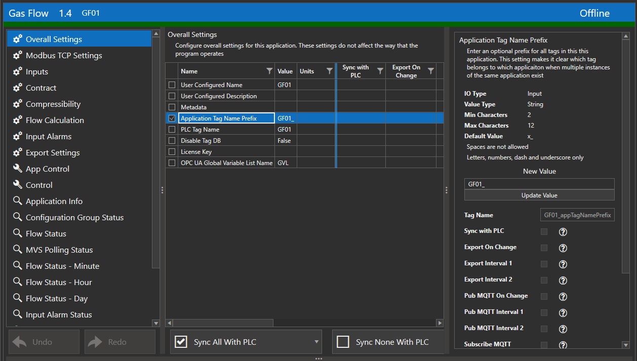 Change the value to 'GF01_'. All tags in the app except user defined tags will now be prefixed with this value.